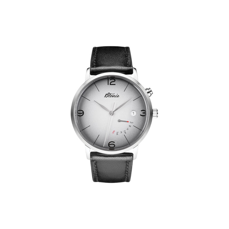 Polski elegancki zegarek męski Błonie Elektro Amper Data. Model z mechanizmem kwarcowym Epson PX84, który jest wyposażony w automatyczny system wytwarzania energii, mechanizm ten nie wykorzystuje baterii z tlenkiem srebra, co eliminuje potrzebę jej wymiany. Koperta została wykonana ze stali szlachetnej. Pasek został uszyty ze skóry cielęcej przez firmę Rios 1931. Szarą tarczę chroni podwójnie wypukłe, odporne na zarysowania szkło szafirowe. Średnica koperty wynosi 38mm. Klasa wodoszczelności tego modelu wynosi 5ATM.