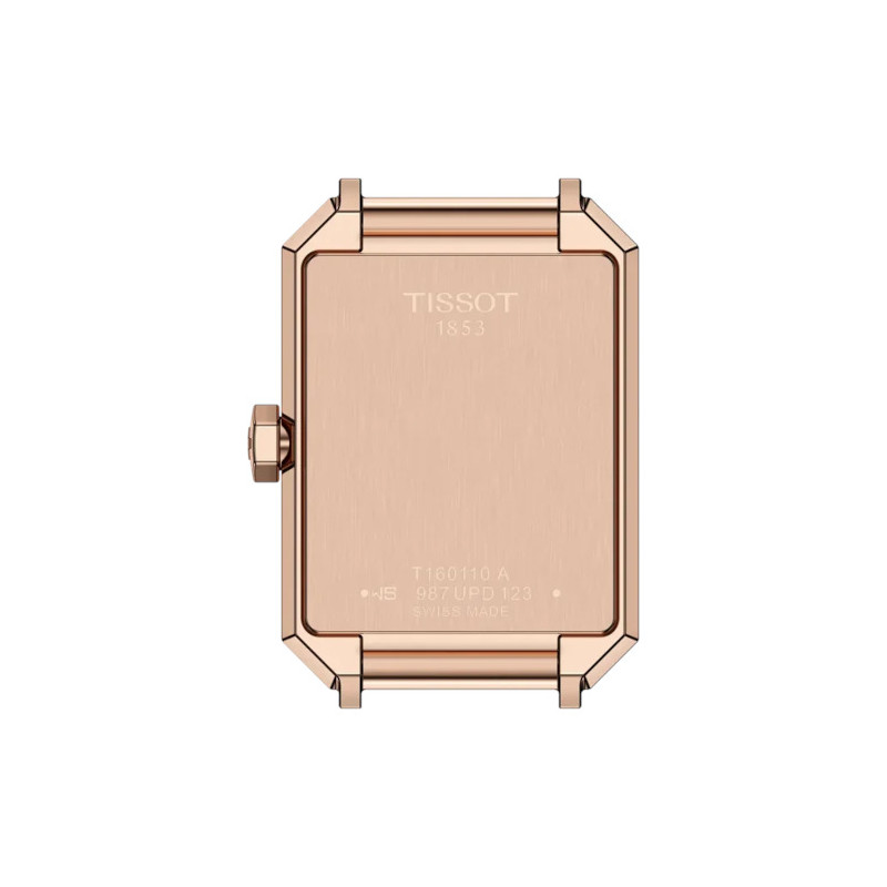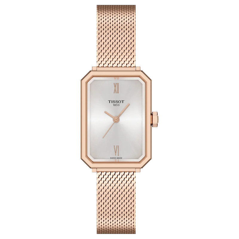 Szwajcarski elegancki zegarek damski Tissot SRV T160.110.33.033.00. Model z precyzyjnym mechanizmem kwarcowym. Koperta została wykonana ze stali szlachetnej pokrytej powłoką w kolorze różowego złota. Bransoleta typu mesh została wykonana ze stali szlachetnej pokrytej powłoką w kolorze różowego złota. Srebrną tarczę chroni najtwardsze, odporne na zarysowania fasetowane szkło szafirowe. Szerokość koperty wynosi 21,8mm natomiast grubość 7,25mm. Klasa wodoszczelności tego modelu wynosi 5ATM.