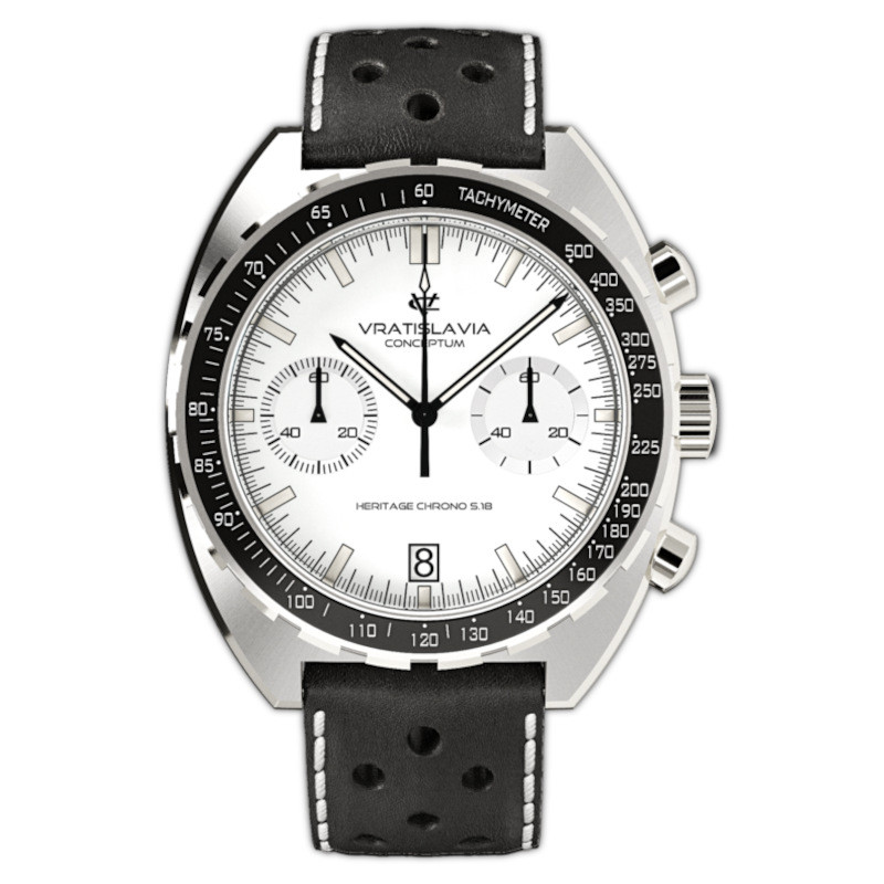 VRATISLAVIA CONCEPTUM HERITAGE CHRONO to zegarek utrzymany w klimacie lat 70tych. Beczułkowata koperta, proste wskazówki, wypukłe szkło oraz perforowany pasek są charakterystyczne dla epoki, której zegarek został poświęcony. Perfekcyjne wykonanie koperty, jej detale, powierzchnie satynowane i polerowane stanowią o wysokiej atrakcyjności tego modelu. Zegarek został wyposażony w mechanizm kwarcowy, który z wysoką dokładnością odmierza czas. Dzięki przystępnej cenie jest jednym z najlepszych wyborów pod względem jakości i designu.