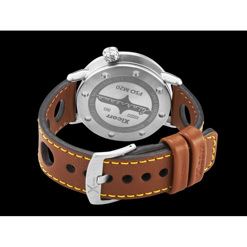 Polski elegancki zegarek męski XICORR FSO M20.22 X0222. Zegarek posiada mechanizm automatyczny. Koperta została wykonana ze stali szlachetnej. Pasek skórzany. Dodatkowy drugi pasek kauczukowy. Zegarek ze szkłem szafirowym z wewnętrzną powłoką antyrefleksową. Średnica koperty wynosi 42 mm.