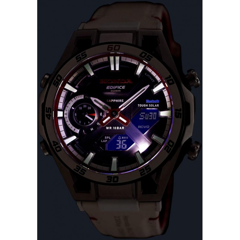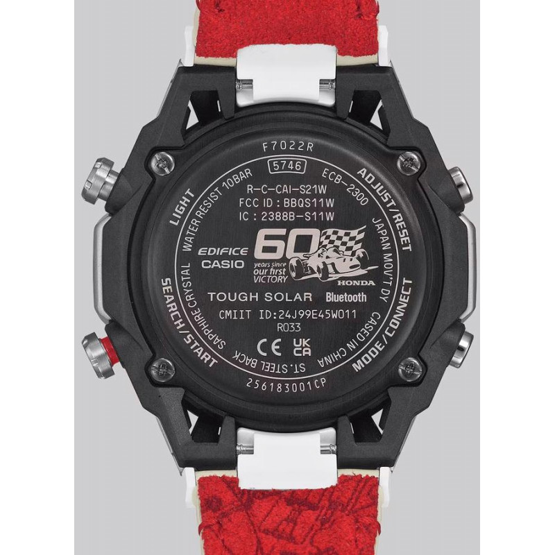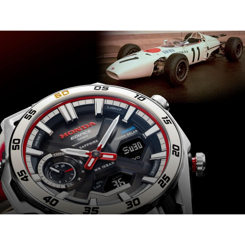 Casio ECB‑2300HR‑1AER Honda Formula 1 60th Anniversary Limited Edition to wyjątkowy model z kolekcji Casio Edifice, stworzony we współpracy z Honda. Zegarek powstał, aby uczcić 60. rocznicę pierwszego zwycięstwa Hondy w Formule 1, które miało miejsce w 1965 roku podczas Grand Prix Meksyku dzięki legendarnemu bolidowi Honda RA272.