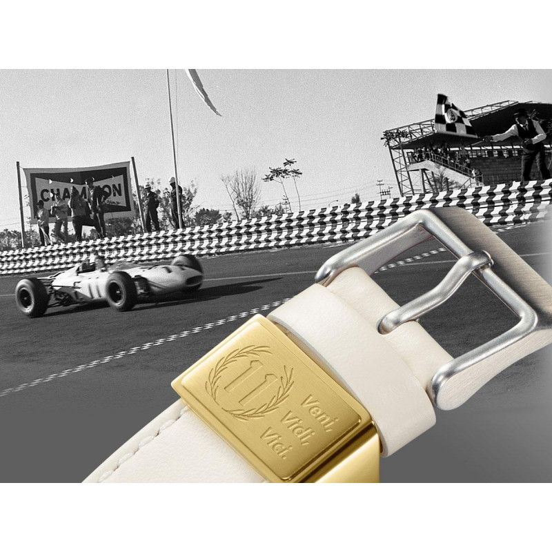 Zegarek wyróżnia się również detalami kolekcjonerskimi. Na deklu koperty wygrawerowano specjalne logo rocznicowe, a pasek z naturalnej skóry zawiera elementy graficzne i techniczne odniesienia do konstrukcji RA272 oraz historycznej daty triumfu Hondy w Formule 1. Całość zapakowana jest w dedykowane pudełko kolekcjonerskie przygotowane specjalnie dla tej edycji.