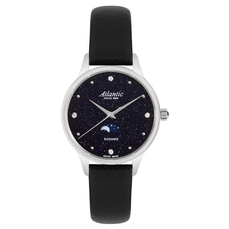 Atlantic Elegance Aventurine to linia zegarków łączących szwajcarską jakość z klasyczną elegancją na co dzień. Zegarki te wyróżniają się tarcami wykonanymi z awenturynu, które nadają im wyjątkowy, szlachetny wygląd. Dodatkowego blasku dodają kryształki Swarovski umieszczone na godzinach 3, 6, 9 i 12.