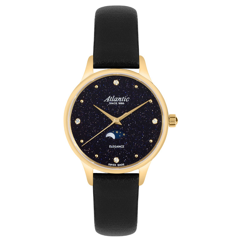 Atlantic Elegance Aventurine to linia zegarków łączących szwajcarską jakość z klasyczną elegancją na co dzień. Zegarki te wyróżniają się tarcami wykonanymi z awenturynu, które nadają im wyjątkowy, szlachetny wygląd. Dodatkowego blasku dodają kryształki Swarovski umieszczone na godzinach 3, 6, 9 i 12.
