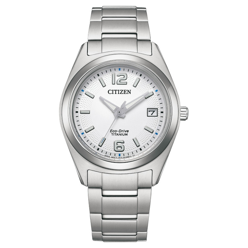 Japoński elegancki zegarek damski Citizen Eco-Drive Super Titanium FE6151-82A. Model z mechanizmem solarnym Eco-Drive. Koperta została wykonana z tytanu. Bransoleta została wykonana z tytanu. Białą tarczę chroni szkło mineralne. Średnica koperty wynosi 34mm natomiast grubość 9mm. Klasa wodoszczelności tego modelu wynosi 5ATM.
