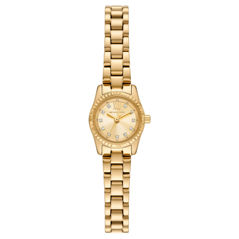 Modowy zegarek damski Michael Kors Lexington MK4862. Model z precyzyjnym mechanizmem kwarcowym. Koperta została wykonana ze stali szlachetnej pokrytej powłoką w kolorze złotym. Bransoleta została wykonana ze stali szlachetnej pokrytej powłoką w kolorze złotym. Złotą tarczę z cyrkoniami chroni szkło mineralne. Szerokość koperty wynosi 30mm. Klasa wodoszczelności tego modelu wynosi 5ATM.