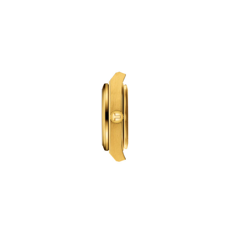 Szwajcarski elegancki zegarek damski Tissot PRX T137.010.33.021.00. Model z precyzyjnym, szwajcarskim mechanizmem kwarcowym. Koperta została wykonana ze stali szlachetnej pokrytej powłoka w kolorze złota. Bransoleta została wykonana ze stali szlachetnej pokrytej powłoka w kolorze złota. Złotą tarczę chroni najtwardsze, odporne na zarysowania szkło szafirowe. Średnica koperty wynosi 25mm natomiast grubość 9,5mm. Klasa wodoszczelności tego modelu wynosi 10ATM.