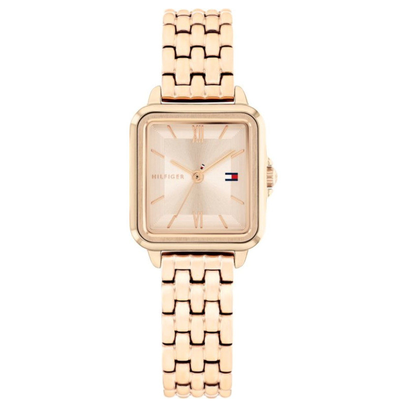 Modowy zegarek damski Tommy Hilfiger Mia 1782833. Model z mechanizmem kwarcowym. Koperta została wykonana ze stali szlachetnej pokrytej powłoką w kolorze różowozłotym. Bransoleta została wykonana ze stali szlachetnej pokrytej powłoką w kolorze różowozłotym. Różowozłotą tarczę chroni szkło mineralne. Szerokość koperty wynosi 23mm natomiast grubość 7mm. Klasa wodoszczelności tego modelu wynosi 3ATM.