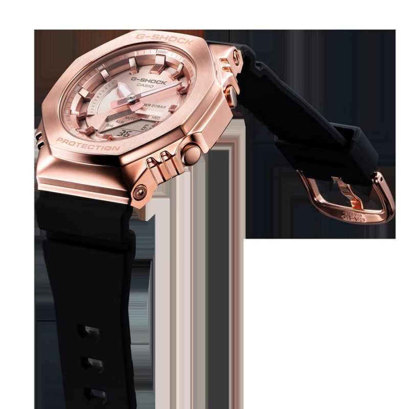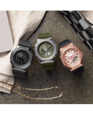 Sportowy damski zegarek Casio G-Shock Women GM-S2100PG-1A4ER. Zegarek posiada precyzyjny mechanizm kwarcowy. Koperta została wykonana ze stali i tworzywa sztucznego. Pasek z tworzywa sztucznego. Utwardzane szkło mineralne. Szerokość koperty wynosi 40,4mm. Zegarek jest odporny na wstrząsy i uderzenia a wodoszczelność 200 metrów pozwala na pływanie i nurkowanie z zegarkiem na nadgarstku.