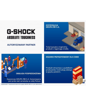 Sportowy zegarek męski Casio G-Shock G-Squad 5600 series DW-H5600-1ER (DWH56001ER). Zegarek posiada precyzyjny, wielofunkcyjny mechanizm kwarcowy zasilany światłem, oraz zewnętrzną ładowarką, dzięki zastosowaniu akumulatora. Koperta oraz pasek zostały wykonane z kompozytowego materiału syntetycznego, w którym zostały wykorzystane również biokomponenty. Utwardzane szkło mineralne. Szerokość koperty wynosi 44,5mm. Zegarek jest odporny na wstrząsy i uderzenia a dzięki wodoszczelności wynoszącej 200 metrów można pływać i nurkować z zegarkiem na nadgarstku. Jest to nowa interpretacja kultowej "kostki", czyli pierwszego modelu G-Shock. Zegarek został wyposażony w funkcje typowe dla sportowych smartwatchy. Posiada czujniki dzięki którym może monitorować tętno, natlenienie krwi oraz jakość snu i wykonywanych ćwiczeń lub aktywności. Dodatkowo został wyposażony w jeden z najlepszych, jak nie najlepszy wyświetlacz negatywowy o nazwie MIP (Memory In Pixel). Dzięki niemu zegarek jest bardzo czytelny, nawet w mocnym słońcu. W zasadzie im jaśniej, tym czytelność jest lepsza i bardziej kontrastowa. Nie bez znaczenia pozostaje również fakt niskiego zapotrzebowania takiego wyświetlacza na energię. Zegarek jest obowiązkową propozycją dal fanów serii 5600.