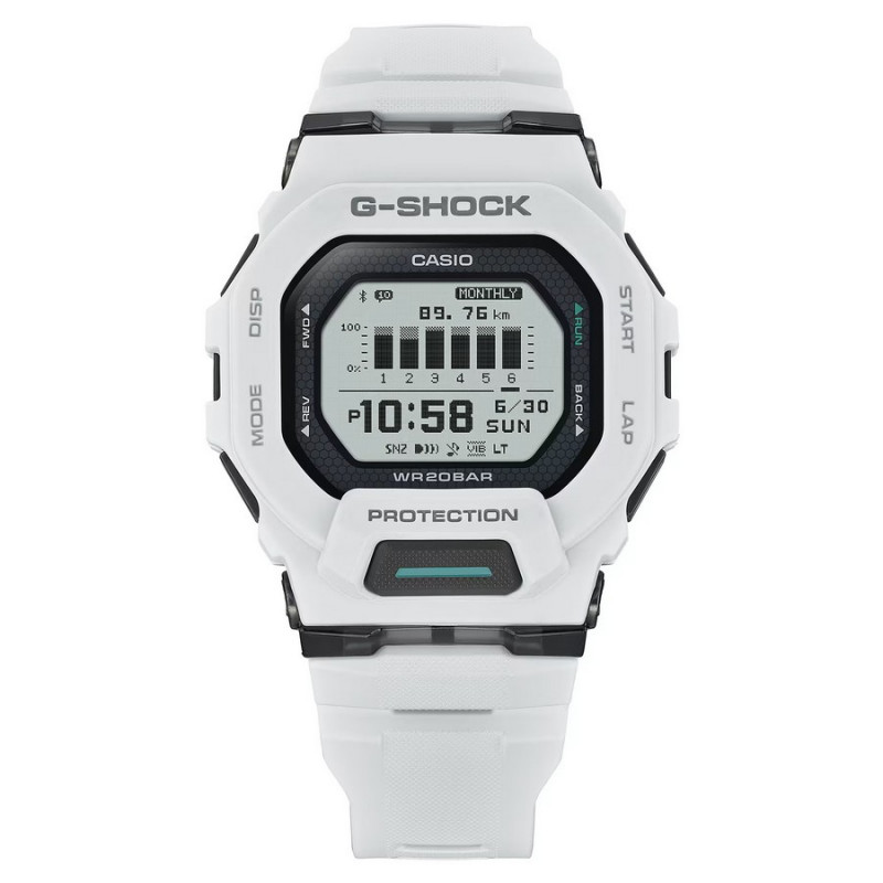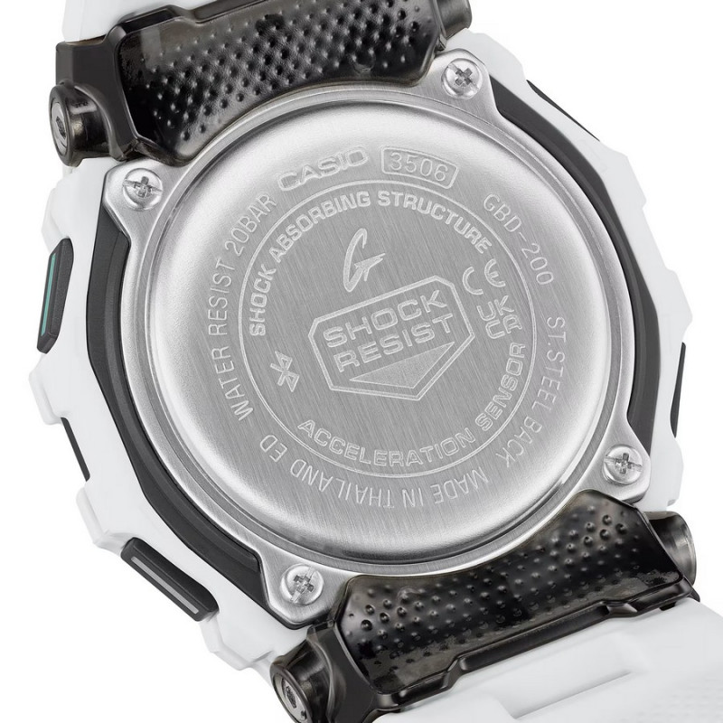 Casio G-Shock GBD-200 to nowa linia zegarków wyposażonych w bardzo czytelny wyświetlacz. Dzięki transmisji Bluetooth i darmowej aplikacji G-SHOCK MOVE zegarek staje się świetnym narzędziem do monitorowania rożnego rodzaju aktywności fizycznej. Mierzy kroki, ilość spalonych kalorii, pokaże prędkość z jaką biegniesz oraz pomoże zaplanować treningi w cyklach tygodniowym, miesięcznym i rocznym. Dodatkowo zegarek posiada stoper, timer, alarm wibracyjny oraz alarm z funkcją drzemki. Dod tego bardzo dobre podświetlenie, odporność na wstrząsy i wysoka wodoszczelność. Wszystko to zamknięte w nowoczesnej designerskiej kopercie w kolorach czarnym, niebieskim i żółtym.
