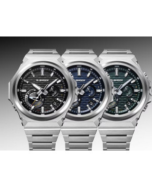 GST-B1000D kontynuuje dziedzictwo G-SHOCK w zakresie solidnej konstrukcji i wzornictwa zakorzenionego w funkcjonalnym pięknie, rekonstruując to dziedzictwo, aby osiągnąć dopracowany, elegancki wygląd. Luneta pozbawiona jest logo, co zapewnia czysty, nowoczesny wygląd, a trzy oddzielne wykończenia szczotkowania pionowe i okrągłe oraz polerowanie lustrzane tworzą bogatą i wyrafinowaną i ekskluzywną fakturę, która zmienia się w zależności od odbicia światła pod różnymi kątami. Solidna bransoleta ze stali nierdzewnej o lustrzanym i szczotkowanym wykończeniu jest połączony z potrójnym zapięciem, również wykonanym z litej stali nierdzewnej. Ten ostry, płaski design z łatwością zabierze Cię ze sobą na spotkania biznesowe, na nieformalne okazje i na zajęcia na świeżym powietrzu.