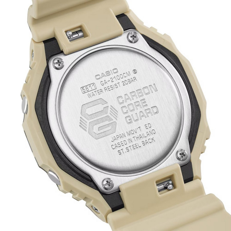 Sportowy zegarek męski Casio G-Shock Original GA-2100CM-5AER (GA2100CM5AER). Zegarek posiada wielofunkcyjny, precyzyjny mechanizm kwarcowy. Koperta została wykonane z wytrzymałego tworzywa sztucznego pochodzenia organicznego i karbonu. Pasek z tworzywa sztucznego pochodzenia organicznego. Szkło mineralne. Szerokość koperty wynosi 45,4mm. Zegarek jest odporny na wstrząsy i uderzenia, a wodoszczelność 200 metrów pozwala na pływanie i nurkowanie z zegarkiem na nadgarstku.