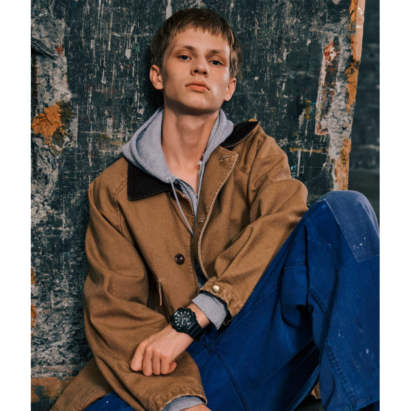 Analogowo-cyfrowy model GA-B010 wyróżnia się dużą kopertą z dużym, czytelnym wyświetlaczem. Wyjątkowo precyzyjne wykończenia – z pierścieniem lunety pokrytym powłoką, tarczą z wykończeniem słonecznym i metalicznym wykończeniem wkładki dodają wartości temu projektowi, który stawia na wytrzymałość. Zegarek potrzebuje jedynie energii słonecznej do zliczania kroków i wyświetlania śledzonych danych na wyświetlaczu cyfrowym. Zegarek przesyła również dane do sparowanego smartfona przez Bluetooth®, zapewniając pełną funkcjonalność na wyciągnięcie ręki. Wystarczy uruchomić aplikację CASIO WATCHES, aby automatycznie i precyzyjnie odmierzać czas oraz łatwo zarządzać dziennikami aktywności z telefonu. Zegarek oferuje przydatne funkcje, takie jak czas światowy i stoper, a także podświetlenie LED o wysokiej jasności, które można włączać i wyłączać dużym przyciskiem z przodu koperty. Indeksy i wskazówki z fosforyzującym wykończeniem zapewniają widoczność nawet w ciemności. Zegarek jest również wykonany z biożywicy, materiału, który ma ograniczyć wpływ na środowisko. Z łatwością zabierzesz go ze sobą na co dzień, jak i na spotkanie biznesowe – to zegarek, którym będziesz się cieszyć przez lata.