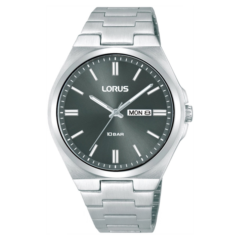 Japoński elegancki zegarek męski Lorus RH393AX9. Model z mechanizmem kwarcowym z komplikacją datownika. Koperta została wykonana ze stali szlachetnej. Bransoleta została wykonana ze stali szlachetnej. Antracytową tarczę chroni szkło mineralne. Średnica koperty wynosi 41mm natomiast grubość 11mm. Klasa wodoszczelności tego modelu wynosi 10ATM.