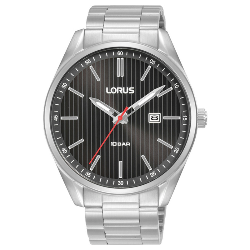 Japoński elegancki zegarek męski Lorus RH913QX9. Model z mechanizmem kwarcowym z komplikacją datownika. Koperta została wykonana ze stali szlachetnej. Bransoleta została wykonana ze stali szlachetnej. Czarną tarczę chroni szkło mineralne. Średnica koperty wynosi 42mm natomiast grubość 10mm. Klasa wodoszczelności tego modelu wynosi 10ATM.