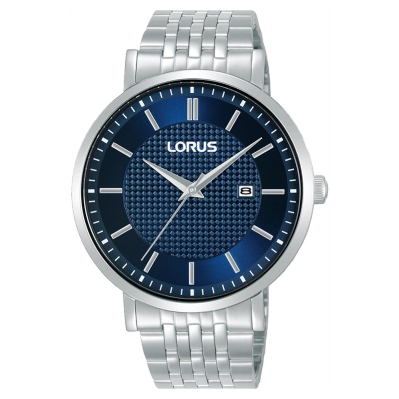 Japoński klasyczny zegarek męski Lorus RH955RX9. Model z precyzyjnym mechanizmem kwarcowym z komplikacją datownika. Koperta została wykonana ze stali szlachetnej. Bransoleta została wykonana ze stali szlachetnej. Granatową ozdobnie giloszowaną tarczę chroni szkło mineralne. Średnica koperty wynosi 42mm natomiast grubość 10mm. Klasa wodoszczelności tego modelu wynosi 5ATM.