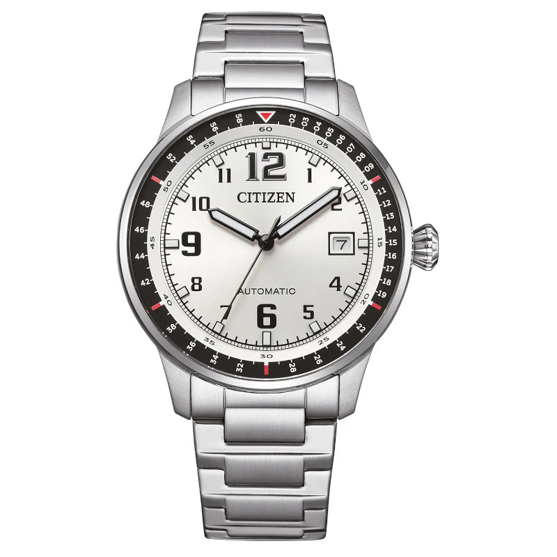 Sportowy zegarek męski Citizen Mechanical Urban Military NJ0190-51A. Model z mechanizmem automatycznym Miyota 8210 z 45 godzinną rezerwą chodu. Koperta została wykonana ze stali szlachetnej. Bransoleta została wykonana ze stali szlachetnej. Białą tarczę chroni szkło mineralne. Średnica koperty wynosi 40mm natomiast grubość 12mm. Klasa wodoszczelności tego modelu wynosi 10ATM.