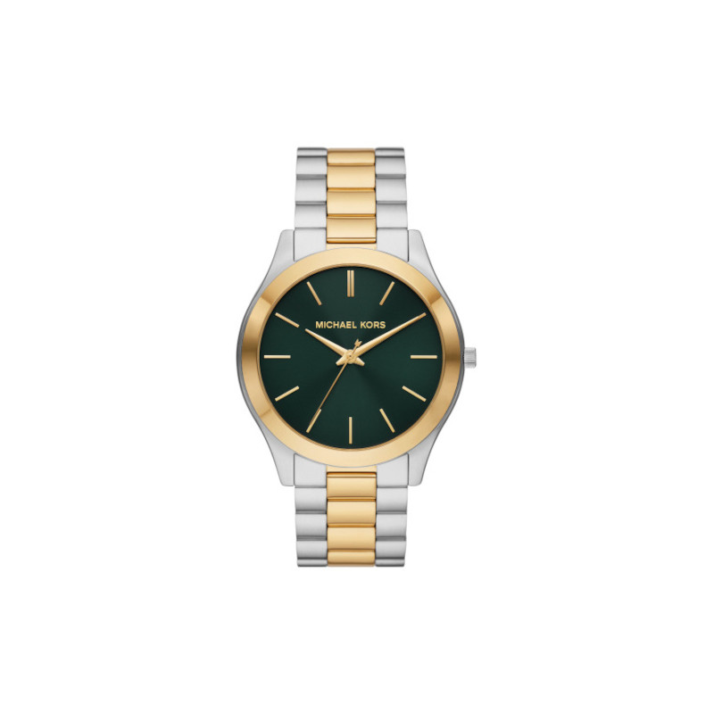 Modowy zegarek męski Michael Kors Runway MK9149. Model z mechanizmem kwarcowym. Koperta została wykonana ze stali szlachetnej częściowo pokrytej powłoką w kolorze różowego złota. Bransoleta została wykonana ze stali szlachetnej częściowo pokrytej powłoką w kolorze różowego złota. Zielona tarczę chroni szkło mineralne. Średnica koperty wynosi 44mm natomiast grubość 8mm. Klasa wodoszczelności tego modelu wynosi 5ATM.