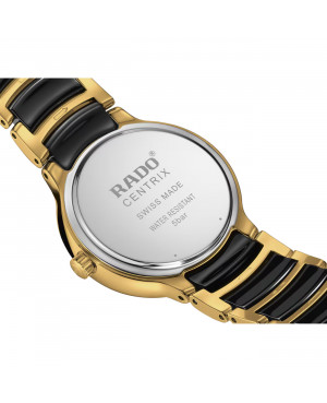 Szwajcarski elegancki zegarek damski ROAMER C-Line 997833 48 85 20 (997833488520). Model z precyzyjnym mechanizmem kwarcowym. Koperta została wykonana ze stali szlachetnej pokrytej powłoką w kolorze czarnym oraz złotym. Bransoleta została wykonana z połączenia stali szlachetnej pokrytej powłoką w kolorze złotym z ceramiką. Czarną ozdobioną giloszem tarczę chroni najtwardsze, odporne na zarysowania szkło szafirowe. Średnica koperty wynosi 41mm. Klasa wodoszczelności tego modelu wynosi 5ATM.