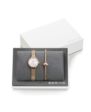 Elegancki zegarek damski Bering Classic 17926-734. Model z precyzyjnym mechanizmem kwarcowym. Koperta została wykonana ze stali szlachetnej pokrytej powłoką w kolorze złotym. Bransoleta została wykonana ze stali szlachetnej powłoką w kolorze złotym. Białą tarczę chroni najtwardsze, odporne na zarysowania szkło szafirowe. Szerokość koperty wynosi 26mm. Klasa wodoszczelności tego modelu wynosi 3ATM.