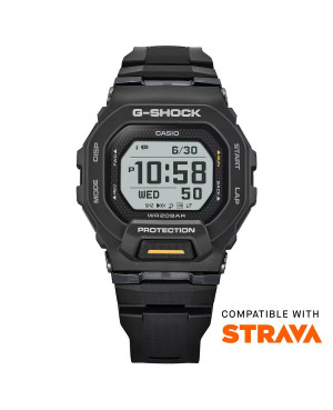 Sportowy zegarek męski CASIO G-Shock G-Squad GBD-200-1A1ER (GBD2001A1ER). Zegarek posiada precyzyjny wielofunkcyjny mechanizm kwarcowy z funkcja Bluetooth. Koperta oraz pasek zostały wykonane ze specjalnego tworzywa sztucznego. Wzmacniane szkło mineralne. Szerokość koperty wynosi 45,9 mm. Zegarek jest odporny na wstrząsy, a wodoszczelność 200 metrów pozwala na pływanie i nurkowanie z zegarkiem na nadgarstku. Nowa wersja z jasnym wyświetlaczem.