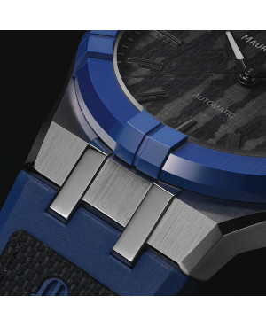 Szwajcarski zegarek męski Maurice Lacroix Aikonic AC6008-TTB00-330-2. Model z mechanizmem automatycznym ML1000 z 60 godzinną rezerwą chodu. Koperta została wykonana ze szczotkowanej stali szlachetnej, natomiast bezel został wykonany z ceramiki. Czarny pasek został wykonany z połączenia tworzywa sztucznego oraz włókien syntetycznych. Tarczę z włókna węglowego chroni najtwardsze, odporne na zarysowania szkło szafirowe z obustronną powłoką antyrefleksyjną. Średnica koperty wynosi 43mm natomiast grubość 11mm. Klasa wodoszczelności tego modelu wynosi 10ATM.