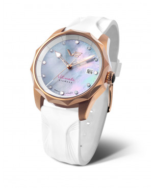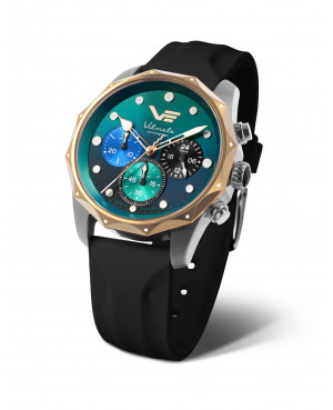 Elegancki zegarek damski Vostok Europe Vilnele JS20-125E752. Model z mechanizmem kwarcowym Miyota z komplikacją chronografu . Koperta została wykonana ze stali szlachetnej częściowo pokrytej powłoką w kolorze złotym. Zielony pasek został uszyty ze skóry naturalnej. W zestawie dodatkowo dwa paski silikonowe. Istnieje możliwość dokupienia stalowej bransolety dedykowanej do tego modelu. Gradientową zieloną tarczę chroni najtwardsze, odporne na zarysowania szkło szafirowe z antyrefleksem. Średnica koperty wynosi 39mm natomiast grubość 11,7mm. Klasa wodoszczelności tego modelu wynosi 10ATM. Model pochodzi z edycji limitowanej do 3000 sztuk.