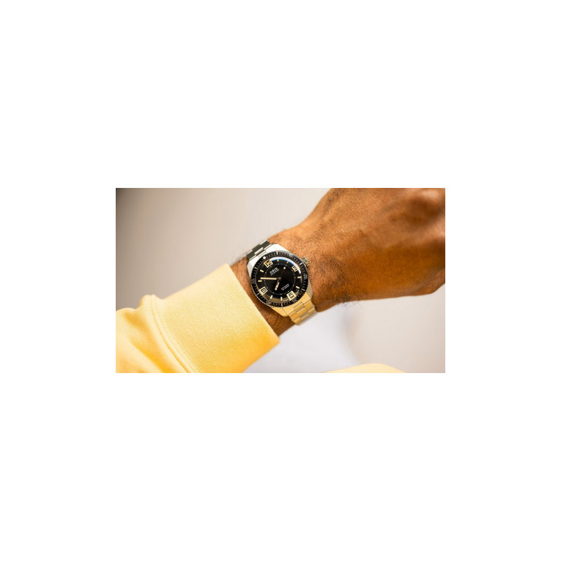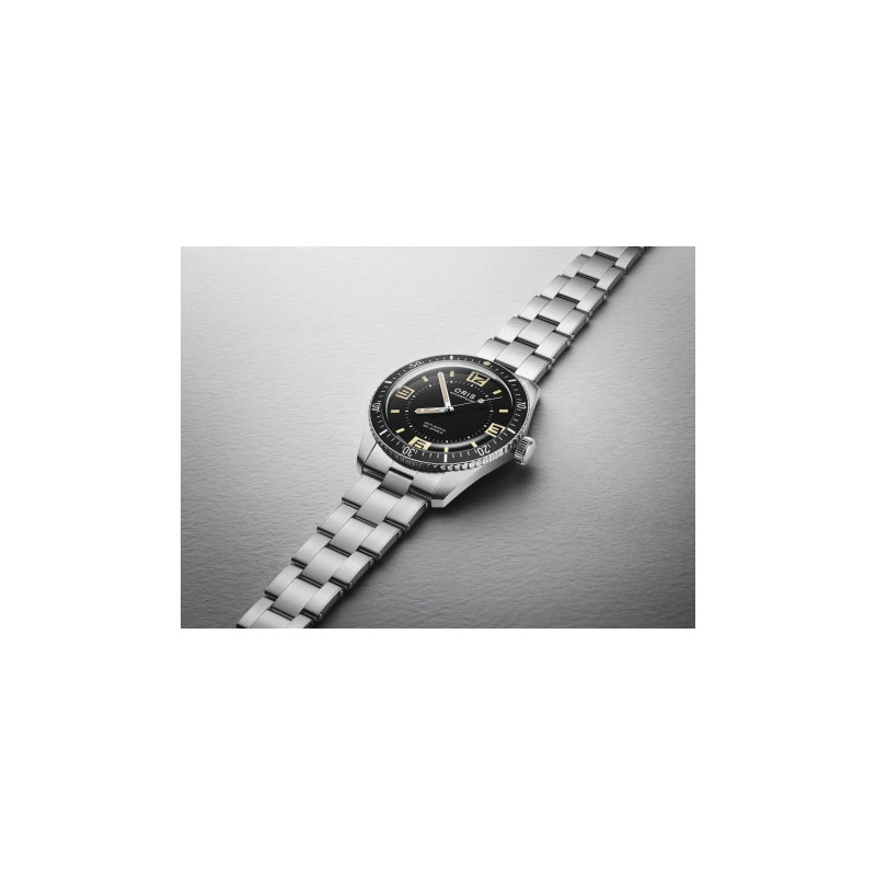 Oris Divers Sixty-Five 60th Anniversary Edition to bardzo udana reedycja zegarka Orisa z lat 60-tych. Pierwowzór miał mosiężną kopertę, hesalitowe szkiełko i bardzo dużą, jak na tamte czasy wodoszczelność 100 metrów. W obecnym modelu zastosowano znacznie lepsze materiały. Koperta zegarka została wykonana ze stali szlachetnej. Pełny stalowy dekiel posiada specjalny grawer przedstawiający historyczne logo marki ORIS. Historyczne logo marki zostało umieszczone także na tarczy zegarka. Do złudzenia przypominające plastikowe szkło zostało wykonane z odpornego na zarysowania szkła szafirowego pokrytego od wewnątrz warstwą antyrefleksową. Wodoszczelność jest taka sama jak u protoplasty i wynosi 100 metrów. Rewelacyjna jest czytelność zegarka w każdych warunkach. Wskazówki i indeksy są pokryte substancją luminescencyjną. Koronka jest zakręcana i bardzo wygodna w użytkowaniu.