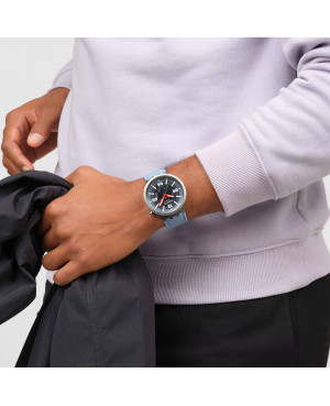 Szwajcarski modowy zegarek Swatch Thru The Horizon SB05M102. Model z precyzyjnym mechanizmem kwarcowym. Koperta została wykonana z tworzywa pochodzenia naturalnego. Szary pasek został wykonany z silikonu. Szarą transparentną tarczę chroni szkło hesalitowe. Średnica koperty wynosi 47mm natomiast grubość 11,75mm. Klasa wodoszczelności tego modelu wynosi 3ATM.