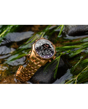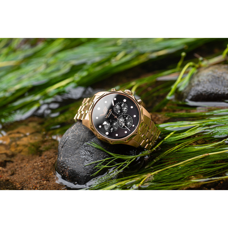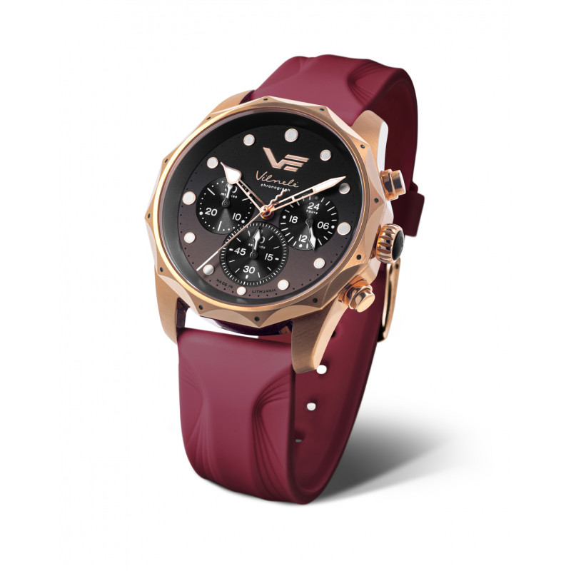 Zegarki Vilnelė to hołd dla naturalnego piękna i ruchu wody – charakteryzują się zakrzywionymi liniami kopert, falistymi lunetami i tarczami, które mienią się niczym powierzchnia rzeki odbijająca światło. Modele z chronografem podkreślają dynamikę poprzez głębokie, gradientowe tarcze, natomiast wersje solarne łączą masę perłową z diamentowymi detalami, nawiązując do harmonii i delikatności natury.
