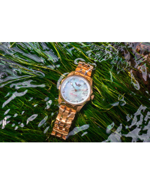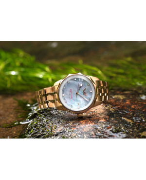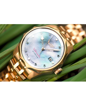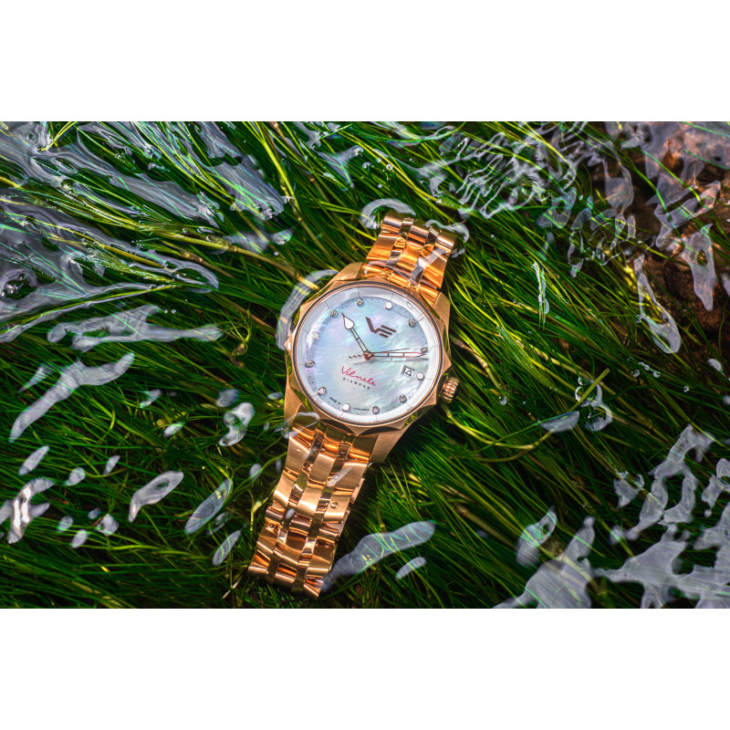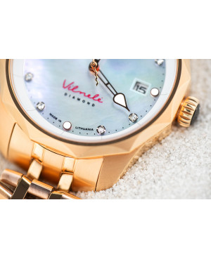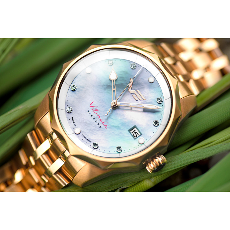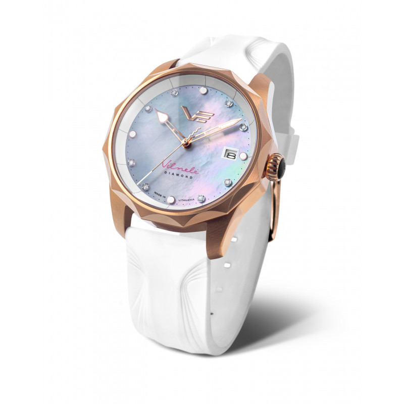 Zegarki Vilnelė to hołd dla naturalnego piękna i ruchu wody – charakteryzują się zakrzywionymi liniami kopert, falistymi lunetami i tarczami, które mienią się niczym powierzchnia rzeki odbijająca światło. Modele z chronografem podkreślają dynamikę poprzez głębokie, gradientowe tarcze, natomiast wersje solarne łączą masę perłową z diamentowymi detalami, nawiązując do harmonii i delikatności natury.